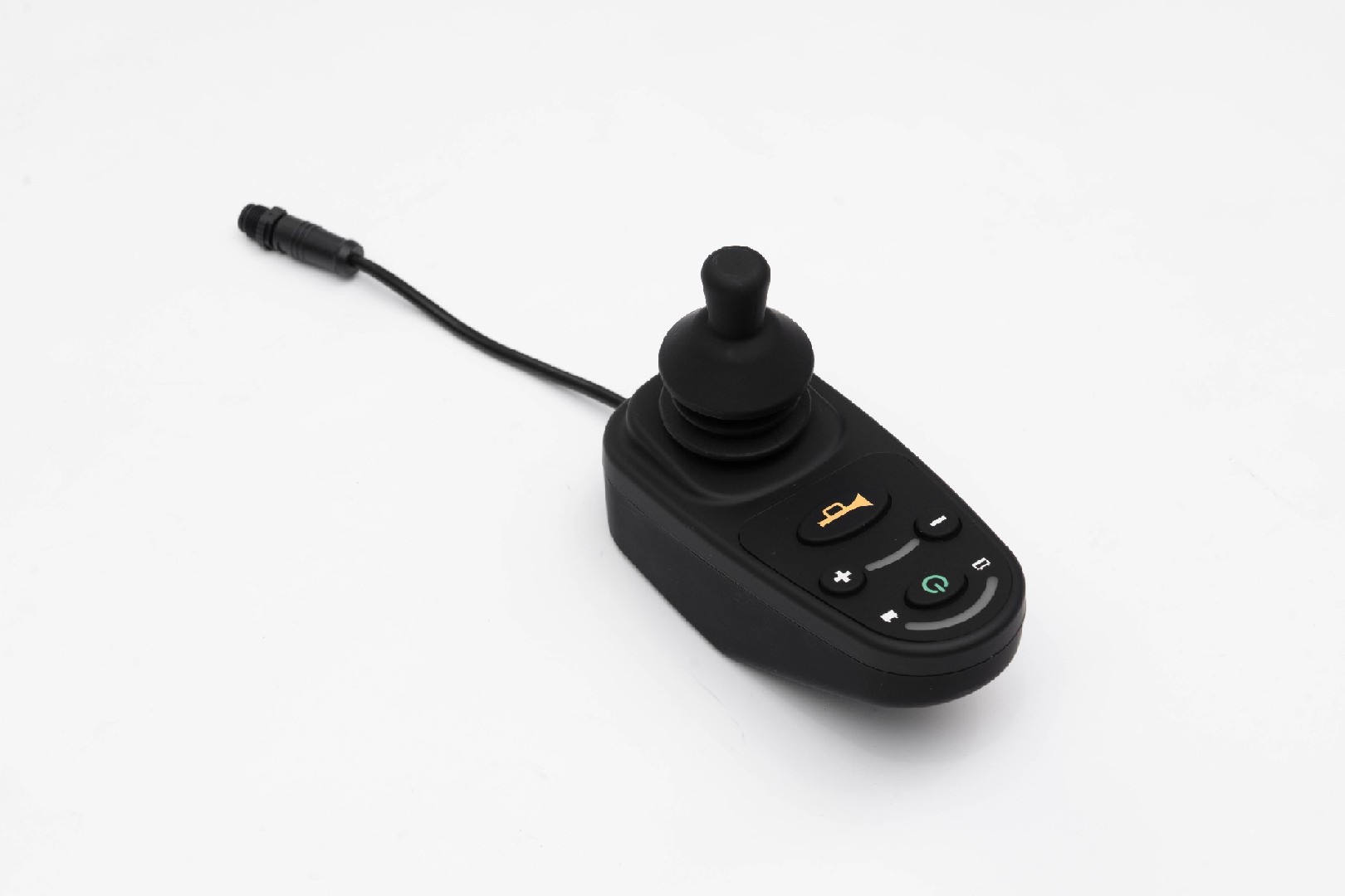 View More 大燈款手柄控制器在基礎款上面增加前大燈功能,控制器通過串口與電機控制器通訊,可以根據客戶要求定制部分功能。產品符合ISO-7176-14 GB/T 18029.14相關要求。